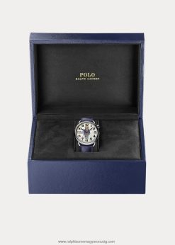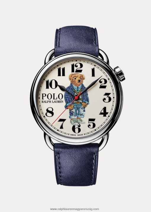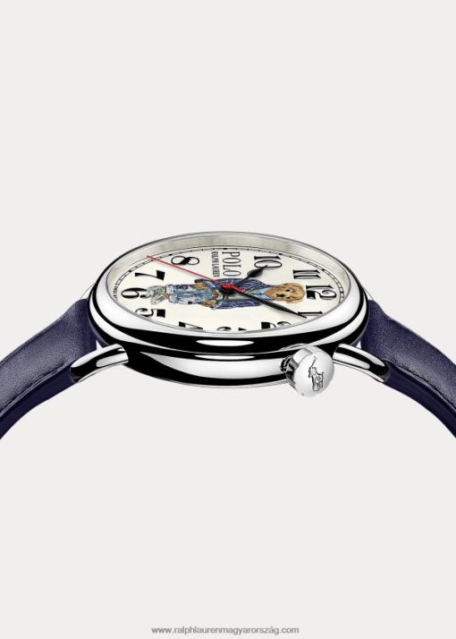 A polo ralph lauren póló medve órájának ez az iterációja egy előkelő öltözékbe öltözött medvét tartalmaz, köztük egy csíkos sötétkék blézert, foltozott farmert és az ikonikus póló krikettpulóvert – a ralph lauren sportruházat egyik alapeleme a mr-ben való debütálása óta . Lauren 1972-es férfi kollekciója. A svájci óratan régi hagyományai szerint készült, ezt a 42 mm-es órát egy rl200-as kaliberű automata szerkezet hajtja, kézzel kidolgozott függőleges ca’tes de geneve csíkokkal és körkörös szemcsézettséggel, az úgynevezett perlaget. vízálló, 38 órás teljesítménytartalékkal, a polírozott rozsdamentes acél tok egy hozzáillő koronával, amelyet jellegzetes póni logónk díszít, és nyitott tok hátulja ívelt zafírkristályból készült, tükröződésmentes kezeléssel. cserélhető sötétkék borjúbőr szíj jár hozzá.