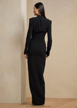 A kriszti estélyi ruhát a szmoking ihletésű ruha, mr. Lauren egyedi tervezésű Rosie Huntington-Whiteley számára az 50. évfordulós kifutói bemutatónkra a Central Parkban. Az időtlen férfiruha-oszlopot a női elegancia tökéletességévé alakítva, ez az amerikai gyártású ruha selyem öltönyben készült, és olyan formális öltönyrészletekkel tűnik ki, mint a selyemfaille borítású csúcshajtók és gombok.