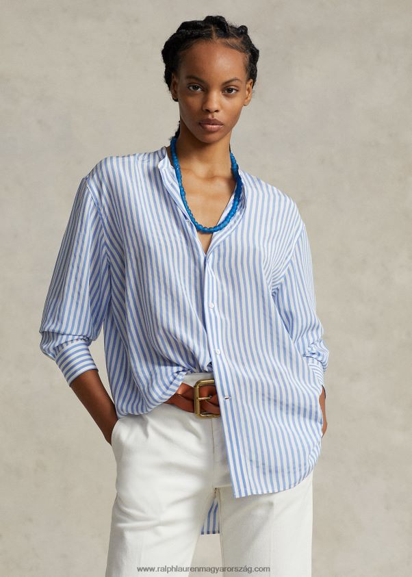 laza szabású csíkos selyeming 2680483212 nők Ralph Lauren 1345 fehér/kék