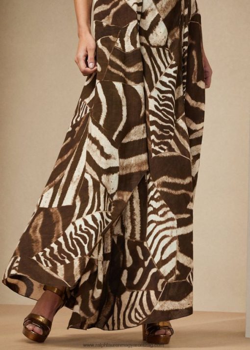 Olaszországban készült, könnyű vászon voile-val, a liliosa a szezon egzotikus mintájával emeli ki az időtlen maxiszoknyát. tervezőink először összeállítanak egy foltot különböző méretű és árnyalatú zebracsíkokból. a foltot azután reprodukálják és kinyomtatják Ralph Lauren egyik tekintélyes olaszországi komói malmában.