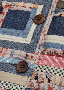 patchwork kabát mintás és egyszínű pamutszövetekből. áramvonalas portörlő sziluettel tervezték. bélelt. corozo gombokkal fejezték be.
