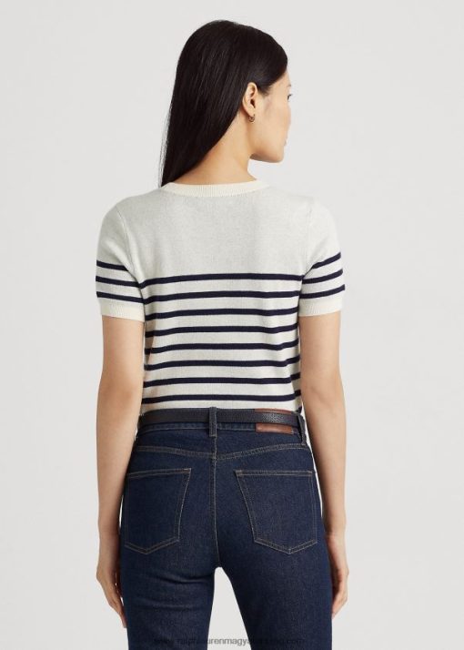 logós csíkos rövid ujjú pulóver 2680483996 nők Ralph Lauren mascarpone krém/tengerszín