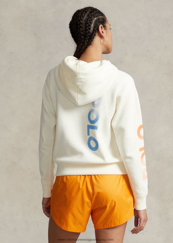 logós és hullámgrafikus polár pulóver 2680483079 nők Ralph Lauren klubházi krém