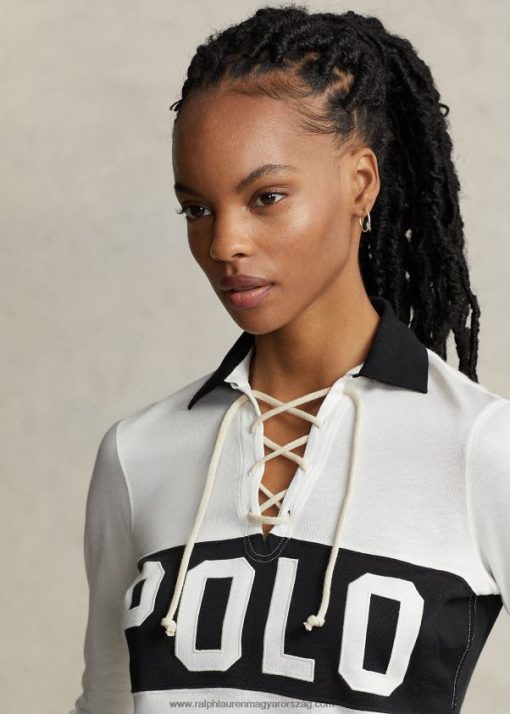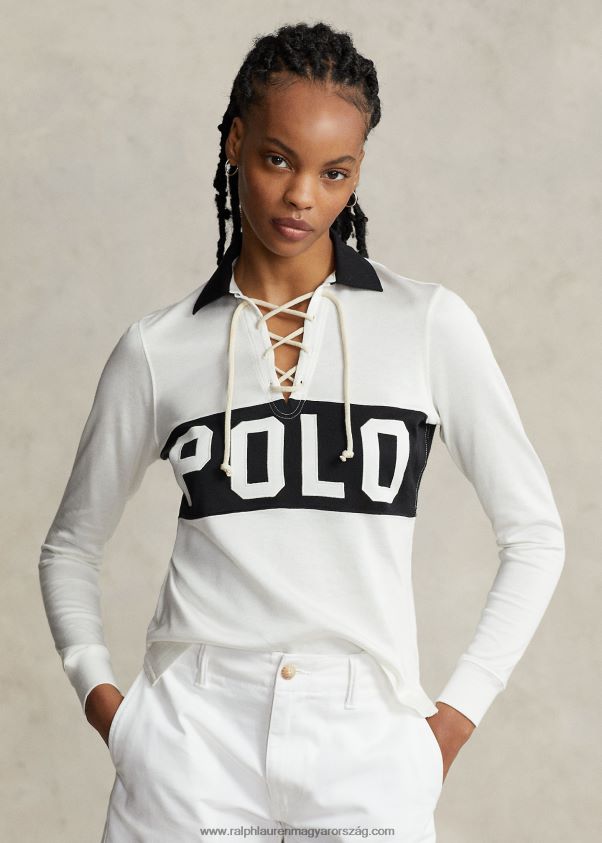 logós fűzős mez póló 2680482985 nők Ralph Lauren fedélzetmosó fehér
