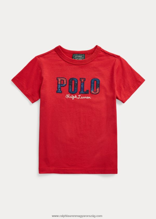 logós pamut dzsörzé póló 2680485802 gyerekek Ralph Lauren post piros