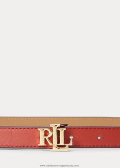 logóval megfordítható bőr vékony öv 2680484946 nők Ralph Lauren vörös napkő/teve