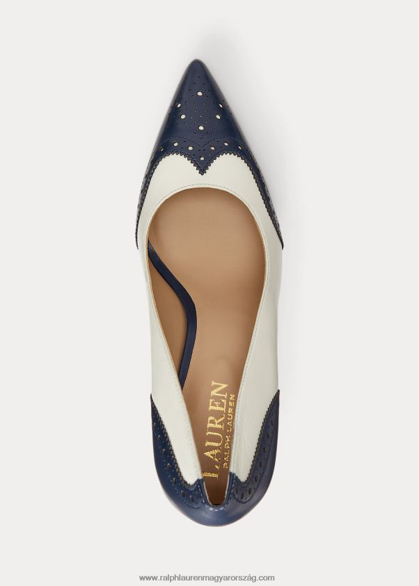 A perforált, csiszolt bőr lábujjvédő és sarok kifinomult textúrát és kifinomultságot kölcsönöz a fényűzően puha nappa bőr lynden pumpának, amelyet elegáns, hegyes orrú sziluett jellemez az elegáns alapdarabok érdekében.