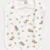 ez a reteszelő előke prémium biopamutból készült, és medvék, elefántok és ábécé kockák édes motívumát tartalmazza.