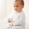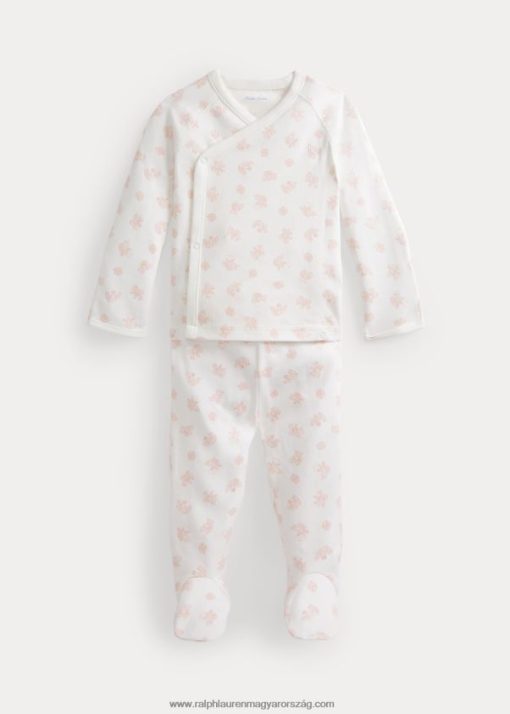 Ez a reteszelő szett csomagoló hatású felsővel és talpú nadrággal érkezik, amelyek prémium biopamutból készültek, és medvék, elefántok és ábécé-tömbök nyomatával.