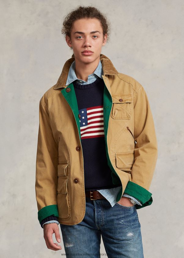 megfordítható vászon használati kabát 2680488519 férfiak Ralph Lauren nappali barna/új erdő