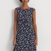 mintás nyakkendős elülső pamut puffos ujjú ruha 2680484044 nők Ralph Lauren sötétkék/krém