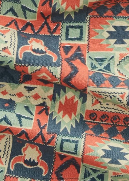 könnyű, szőtt pamutból készült. mintát az 1940-es évek nyugati nyomatai ihlették. folyókagyló gombok. mosott a vintage megjelenésért.