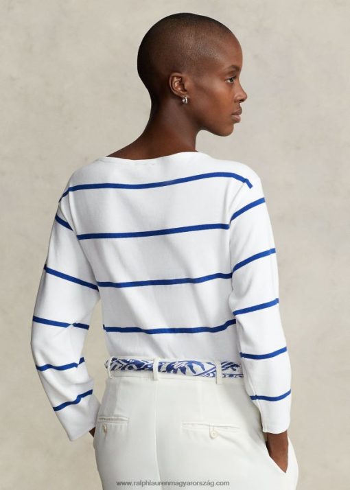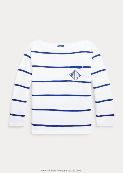 monogram-logós csíkos jersey póló 2680483029 nők Ralph Lauren fehér/ragyogó zafír