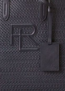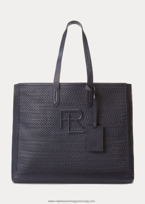A képzett kézművesek szakértelemmel készült, teljes kiőrlésű borjúbőrből készült, tágas, olasz gyártású táska bonyolult szövésű panelekkel és lila címkével ellátott „rl” logóval van ellátva.