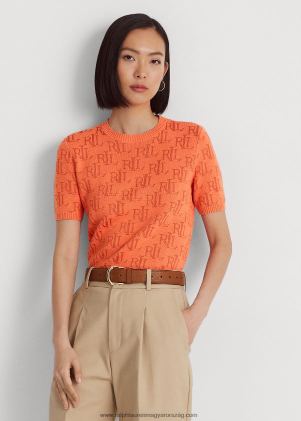 monogramos jacquard rövid ujjú pulóver 2680483787 nők Ralph Lauren kanyon narancs