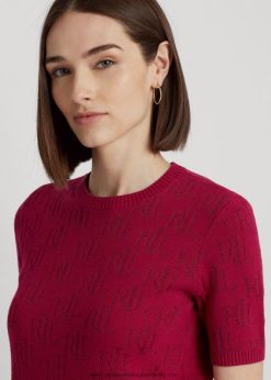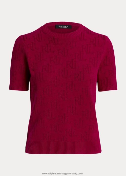 monogramos jacquard rövid ujjú pulóver 2680483788 nők Ralph Lauren fukszia bogyó