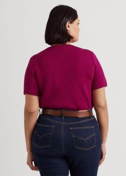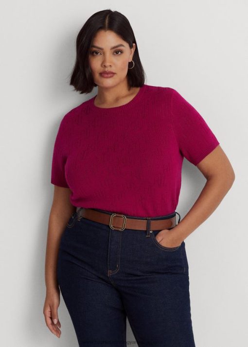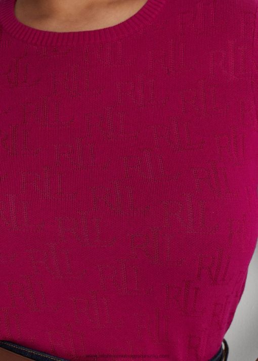 monogramos jacquard rövid ujjú pulóver 2680484504 nők Ralph Lauren fukszia bogyó