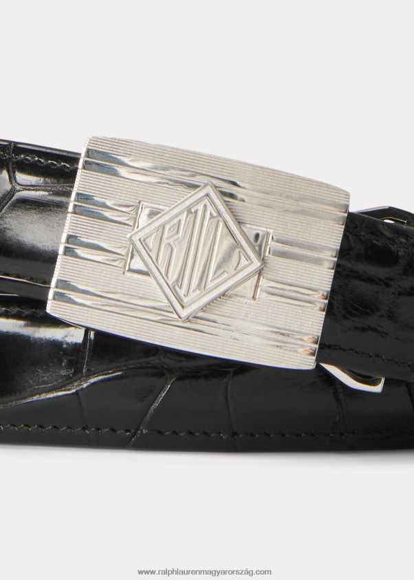Amerikában, eredeti aligátorból készült, karcsú öv motorral esztergált sárgaréz plakett csatja palládium bevonattal és ralph lauren art deco ihletésű monogramjával rendelkezik.