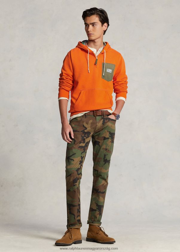 negyedcipzáras polár kapucnis pulcsi 2680488673 férfiak Ralph Lauren vitorlás narancs