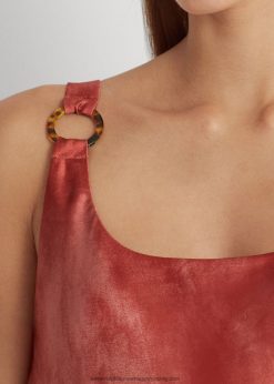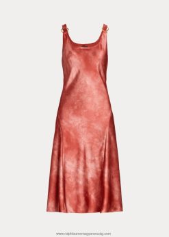 nyakkendő-festék-mintás gyűrűs szegélyű szatén ruha 2680483817 nők Ralph Lauren vörös napkő multi