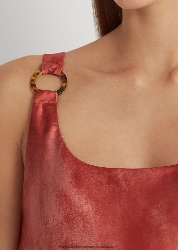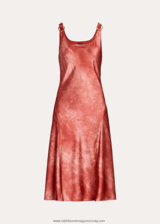 nyakkendő-festék-mintás gyűrűs szegélyű szatén ruha 2680484305 nők Ralph Lauren vörös napkő multi