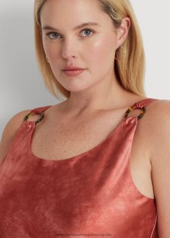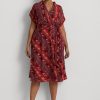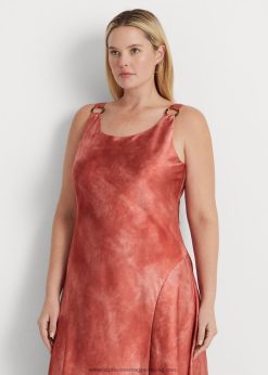 nyakkendő-festék-mintás gyűrűs szegélyű szatén ruha 2680484516 nők Ralph Lauren vörös napkő multi