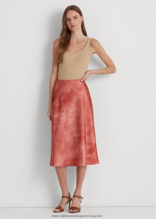 nyakkendő-festék-mintás szaténszoknya 2680484307 nők Ralph Lauren vörös napkő multi