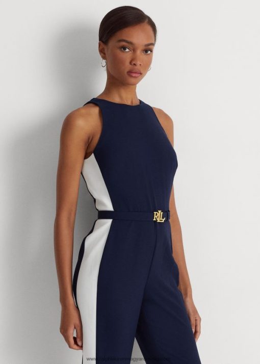 oldalcsíkos krepp jumpsuit 2680489564 nők Ralph Lauren rafinált sötétkék/fehér
