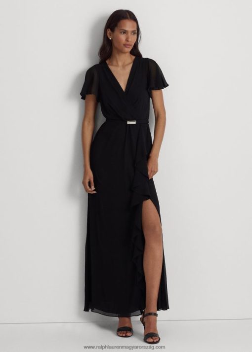 öves georgette libbenő ujjú ruha 2680484439 nők Ralph Lauren fekete