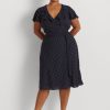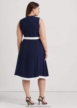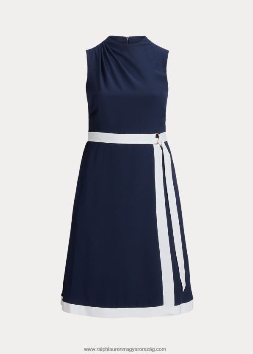 öves krepp álnyakú ruha 2680484808 nők Ralph Lauren rafinált sötétkék/fehér