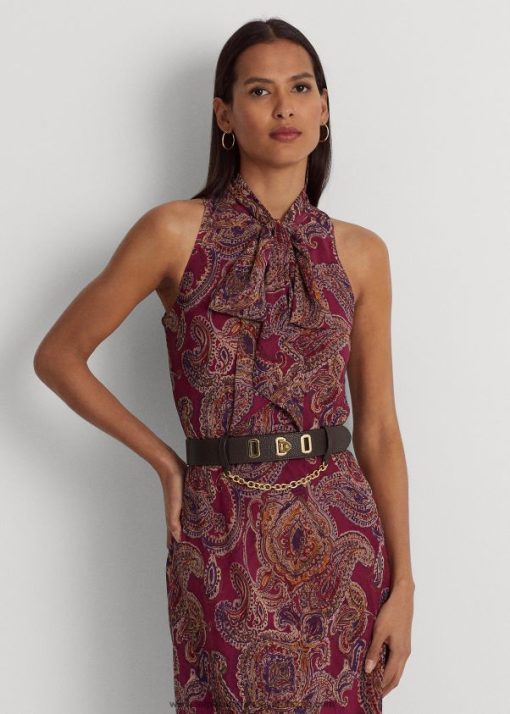 paisley ráncos georgette nyakkendős ruha 2680489156 nők Ralph Lauren bordó multi