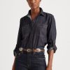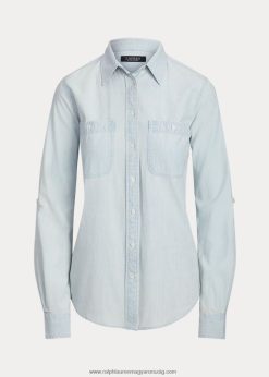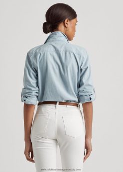pamut chambray tekercses füles ujjú ing 2680484226 nők Ralph Lauren chambray mosás