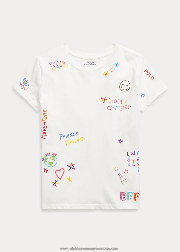 pamut dzsörzé grafikus póló 2680487101 gyerekek Ralph Lauren fedélzetmosó fehér