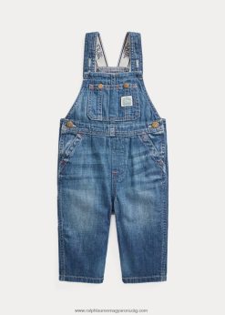 ezek a könnyű overallok indigószínűre festett farmerből készültek, és elöl a munkaruha ihlette „polo rl” felirat látható. a belső varrásnál található gyűrűpattintások megkönnyítik az öltözékváltást.