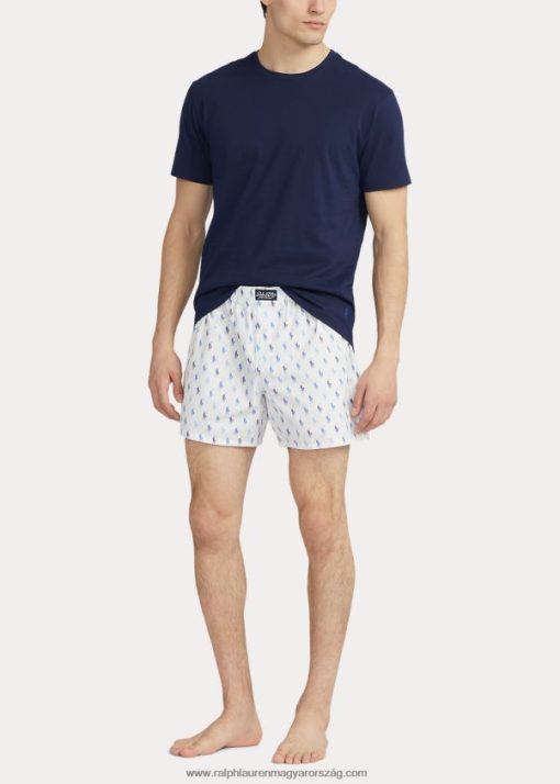 pamut nyakú póni boxer szett 268048634 férfiak Ralph Lauren fehér/kék riviéra sötétkék