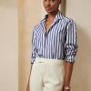 Az archív gyűjtemény stílusából merít ihletet, ez az olasz gyártmányú ing a haszonelvű elemeket egyesíti, beleértve a gombos vállpántokat és a füles mellzsebeket, valamint a pamut twill puha kendőjét. A „Ralph lauren”-vel gravírozott gombok különleges megjelenést kölcsönöznek.