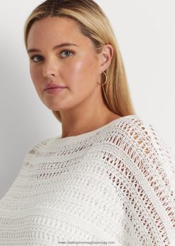 pamuthálós rövid ujjú pulóver 2680484539 nők Ralph Lauren fehér