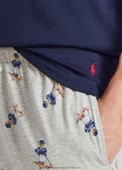pamutkeverék-jersey alvóing 268048232 férfiak Ralph Lauren sötétkék/andover hanga/piros