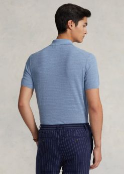 pamutvászon pólógalléros pulóver 268048405 férfiak Ralph Lauren csatorna kék