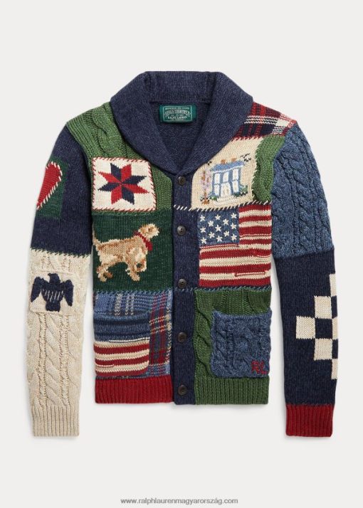 patchwork pamut keverékű kendős kardigán 2680486590 gyerekek Ralph Lauren tan multi