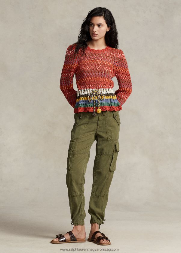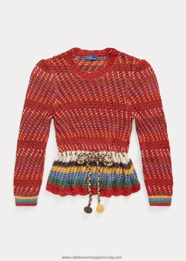 pointelle pamut peplum pulóver 2680483189 nők Ralph Lauren narancssárga multi