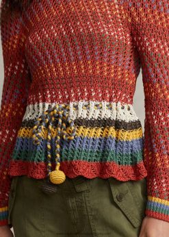 Ez a kézműves megjelenésre készült pulóver pointelle-kötésű olasz pamutfonalból, hogy létrehozza a színes, áttört motívumát. puffasztott ujjakkal és húzózsinóros peplum derékkal rendelkezik. A ralph lauren jobb gyapottal együttműködve javítja a gyapottermesztést világszerte. a jobb gyapot arra tanítja a gazdálkodókat, hogy hatékonyan használják fel a vizet, gondoskodjanak a talaj és a természetes élőhelyek egészségéről, csökkentsék a legkárosabb vegyszerek használatát, és hajtsák végre a tisztességes munka elveit.