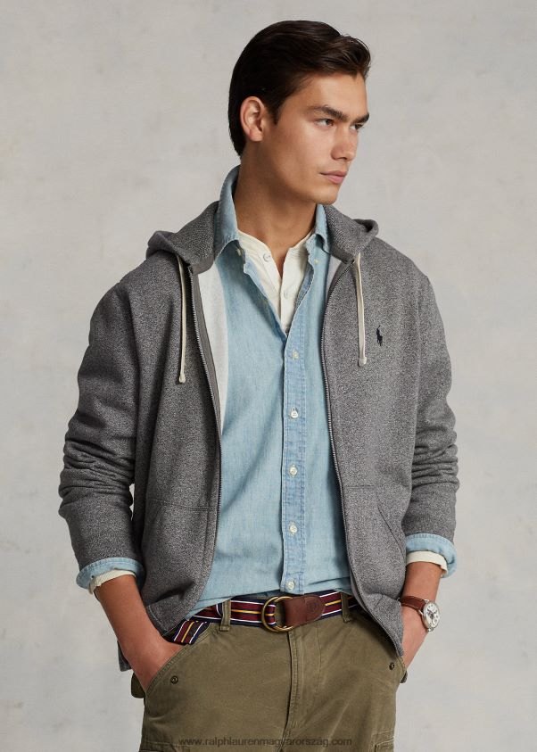 polár teljes cipzáras kapucnis pulcsi 268048393 férfiak Ralph Lauren hamuszürke hanga