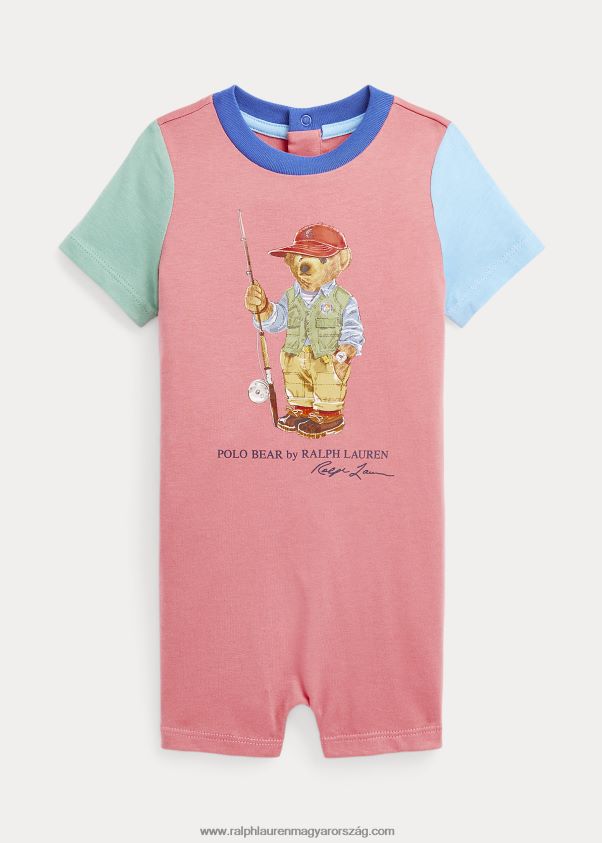 póló mackó színes blokkolt pamut rövidnadrág 26804810019 baba Ralph Lauren sivatagi rózsa multi