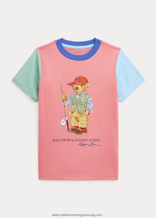 póló mackó színű blokkolt pamut póló 2680485734 gyerekek Ralph Lauren sivatagi rózsa multi