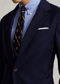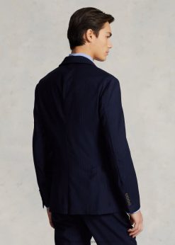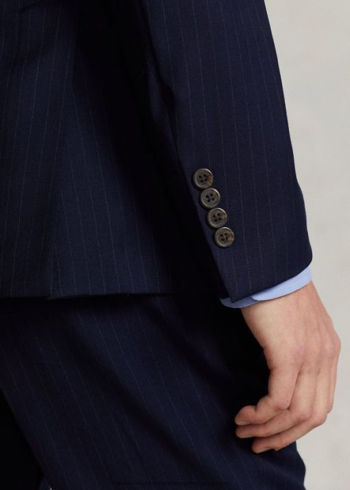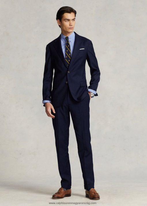 póló puha csíkcsíkos gyapjú öltöny kabát 2680481216 férfiak Ralph Lauren sötétkék csíkos