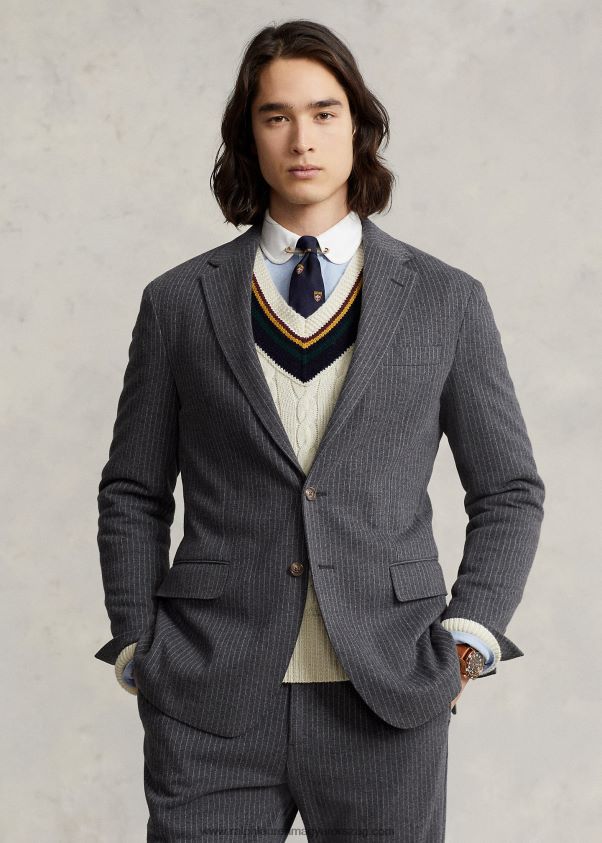 póló puha csíkos kötött öltöny kabát 2680481161 férfiak Ralph Lauren sötétszürke