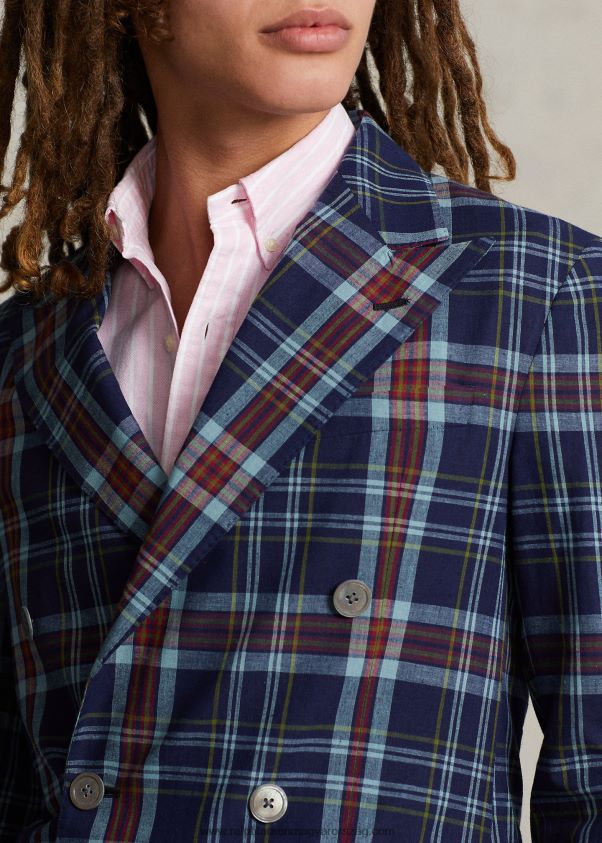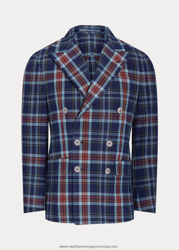póló puha madras öltöny kabát 2680488674 férfiak Ralph Lauren indigó/piros multi