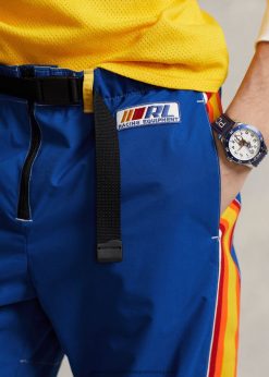A szezon motocross ihletésű koncepciójának része, ezek az uniszex nadrágok a vintage extrém sportruházat előtt tisztelegnek párnázott térdekkel, megerősített varrással az ülésen és bordás oldalcsíkokkal. ennek a párnak a vízlepergető szövete újrahasznosított poliészterből készült, megerősítve a ralph lauren azon törekvését, hogy a legjobb minőségű termékeket hozzon létre, miközben környezetünket is figyelembe veszi.