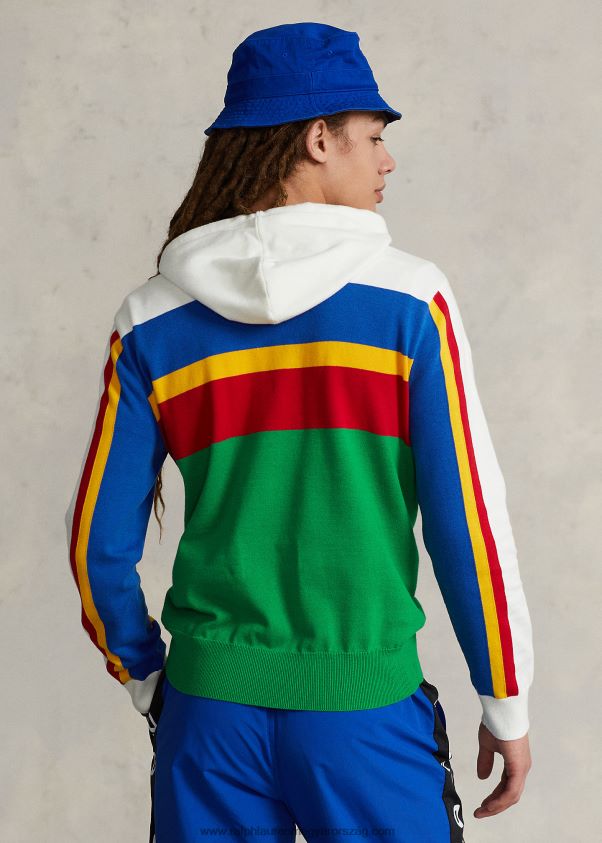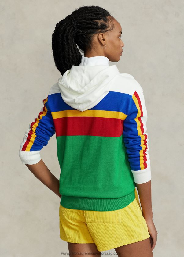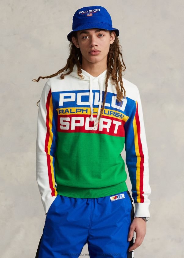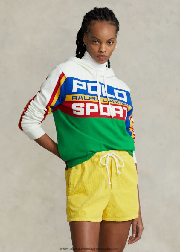 A szezon motocross ihlette koncepciójának része, ez az uniszex pamut kapucnis pulóver színes versenycsíkokkal és merész pólósport logóval. A ralph lauren jobb gyapottal együttműködve javítja a gyapottermesztést világszerte. a jobb gyapot arra tanítja a gazdálkodókat, hogy hatékonyan használják fel a vizet, gondoskodjanak a talaj és a természetes élőhelyek egészségéről, csökkentsék a legkárosabb vegyszerek használatát, és hajtsák végre a tisztességes munka elveit.